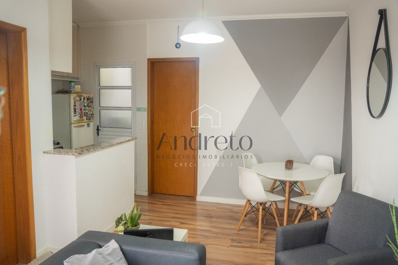 Apartamento mobiliado (exceto cama, maquina de lavar), com 01 dormitório, sala e cozinha americana, área de serviço, 01 banheiro.